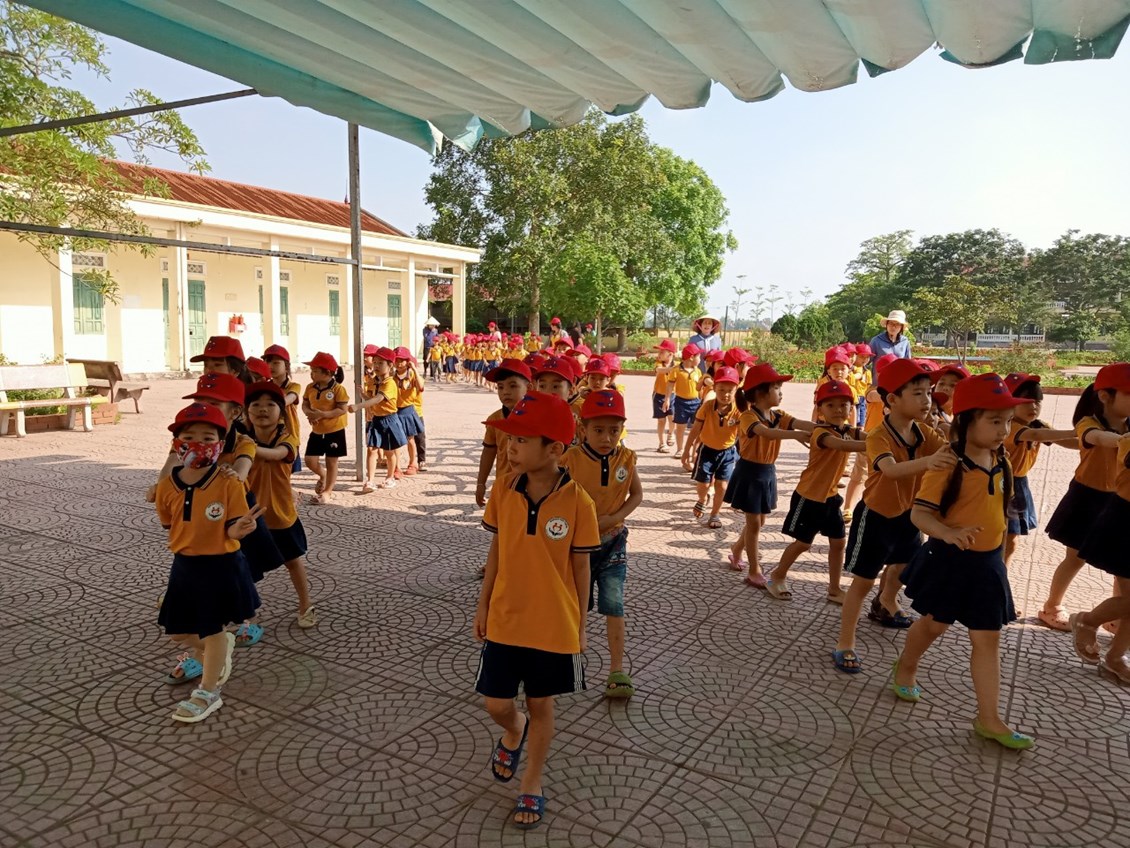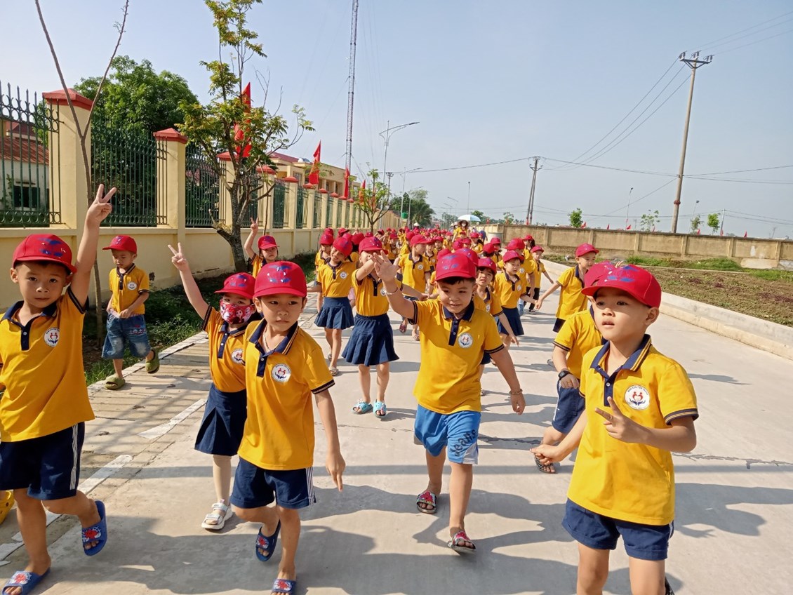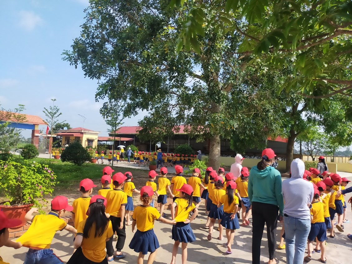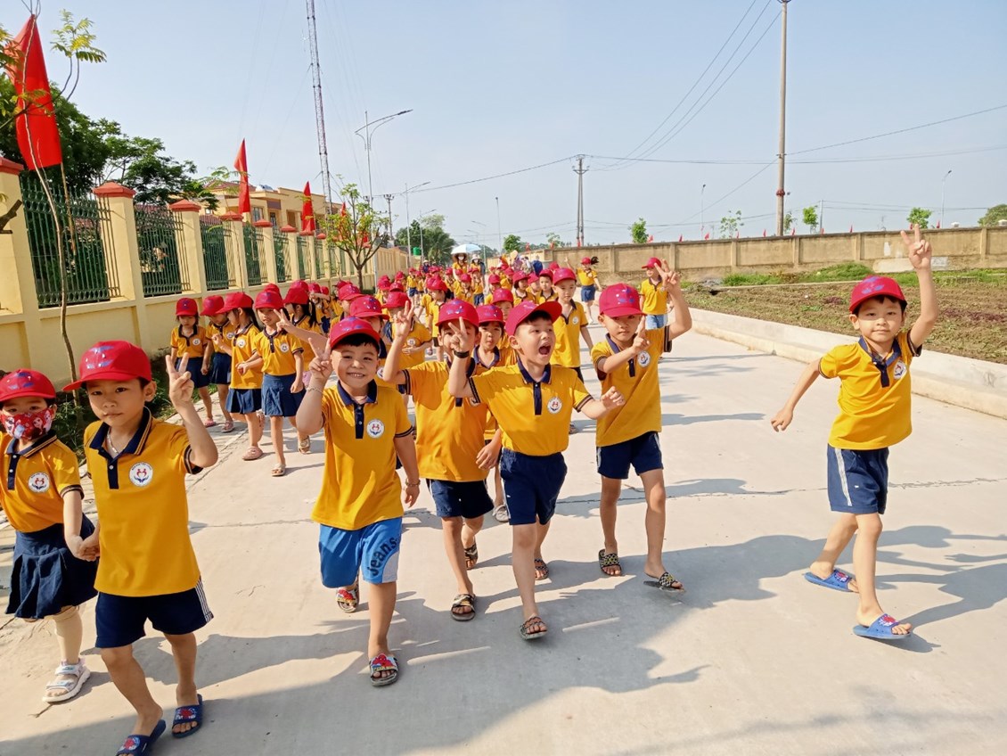 Trường Mầm non Tiên Thắng tổ chức cho trẻ 5 tuổi tham quan tại trường Tiểu học Tiên Thắng.
