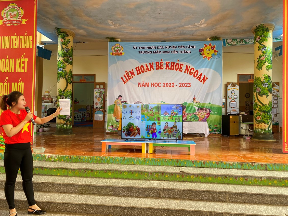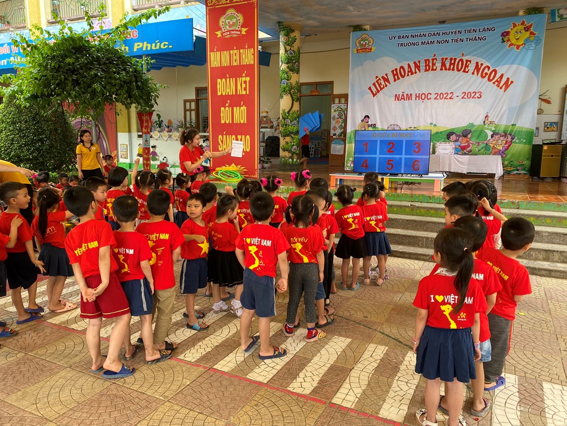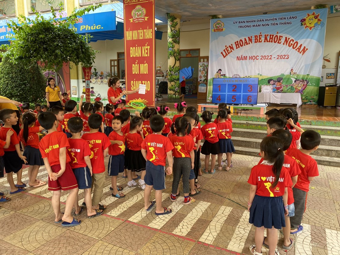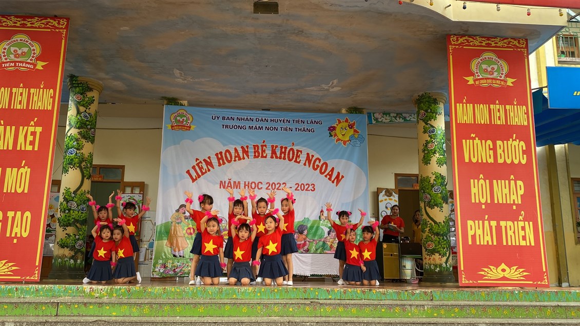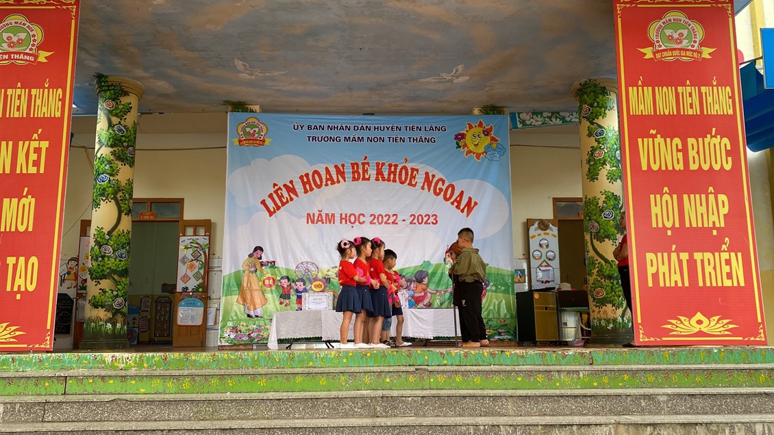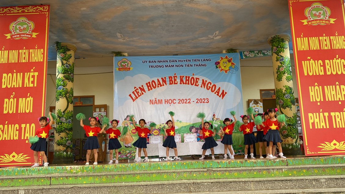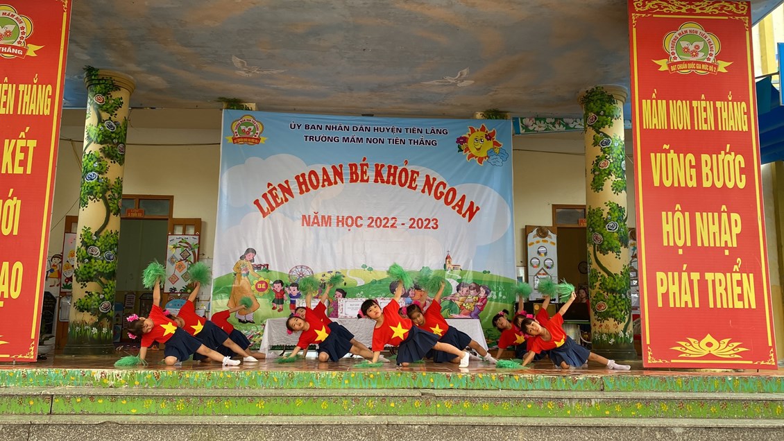 Thực hiện kế hoạch số 28/KH – GDĐT ngày 14/09/2022 của Phòng giáo dục và đào tạo huyện Tiên Lãng về việc triển khai thực hiện nhiệm vụ giáo dục mầm non huyện Tiên Lãng năm học 2022-2023, Kế hoạch số 39 /KH- MNTT ngày 20/09/2022 của trường mầm non Tiên Thắng về việc triển khai nhiệm vụ năm học 2022-2023, chiều ngày 27/4/2023 trường Mầm non Tiên Thắng tổ chức Liên hoan “Bé khỏe ngoan” năm học 2022-2023.