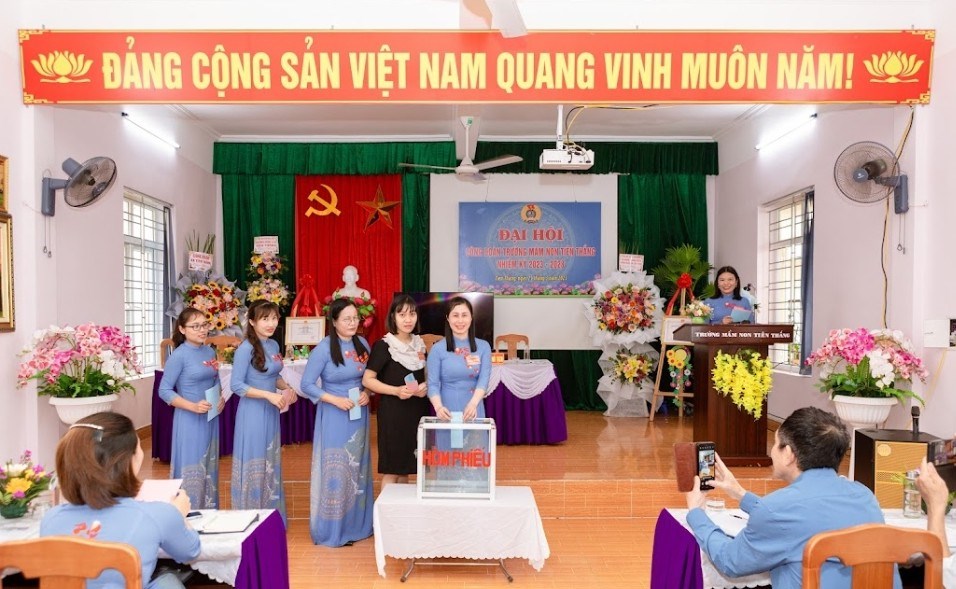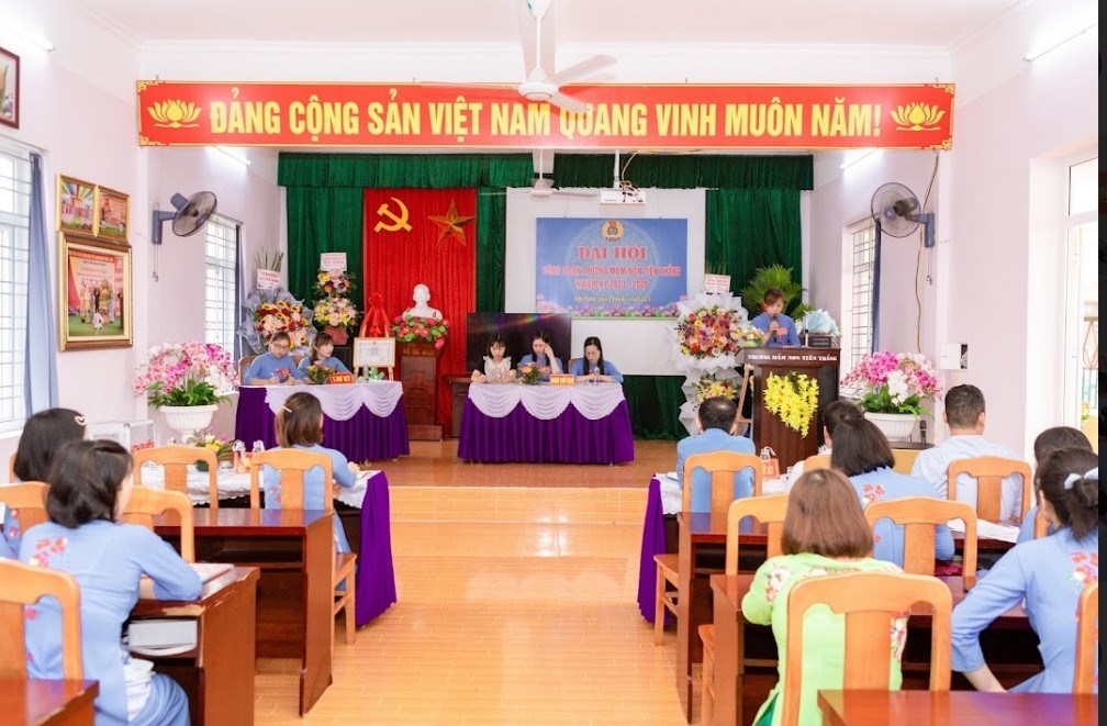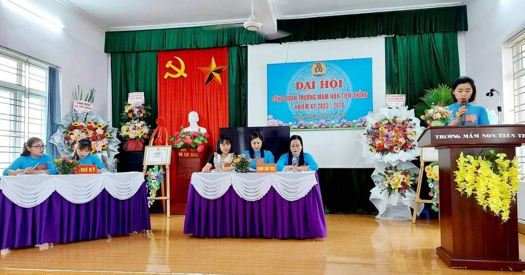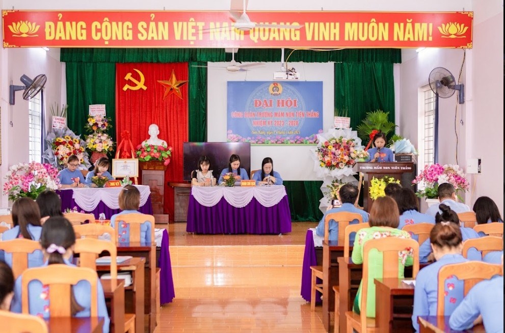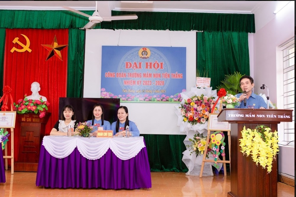 Thực hiện Điều lệ XII Công đoàn Việt Nam, Hướng dẫn số 03/HD-TLĐ ngày 20/02/2020 của Đoàn Chủ tịch Tổng Liên đoàn Lao động Việt Nam về thi hành Điều lệ Công đoàn Việt Nam; Kế hoạch số 22/KH-LĐLĐ ngày 08/11/2022 của Ban Thường vụ LĐLĐ huyện về tổ chức đại hội công đoàn các cấp tiến tới Đại hội XI Công đoàn huyện, Đại hội XV Công đoàn thành phố. Sáng ngày 25/3/2023, Công đoàn trường Mầm non Tiên Thắng long trọng tổ chức Đại hội Công đoàn nhiệm kỳ 2023-2028