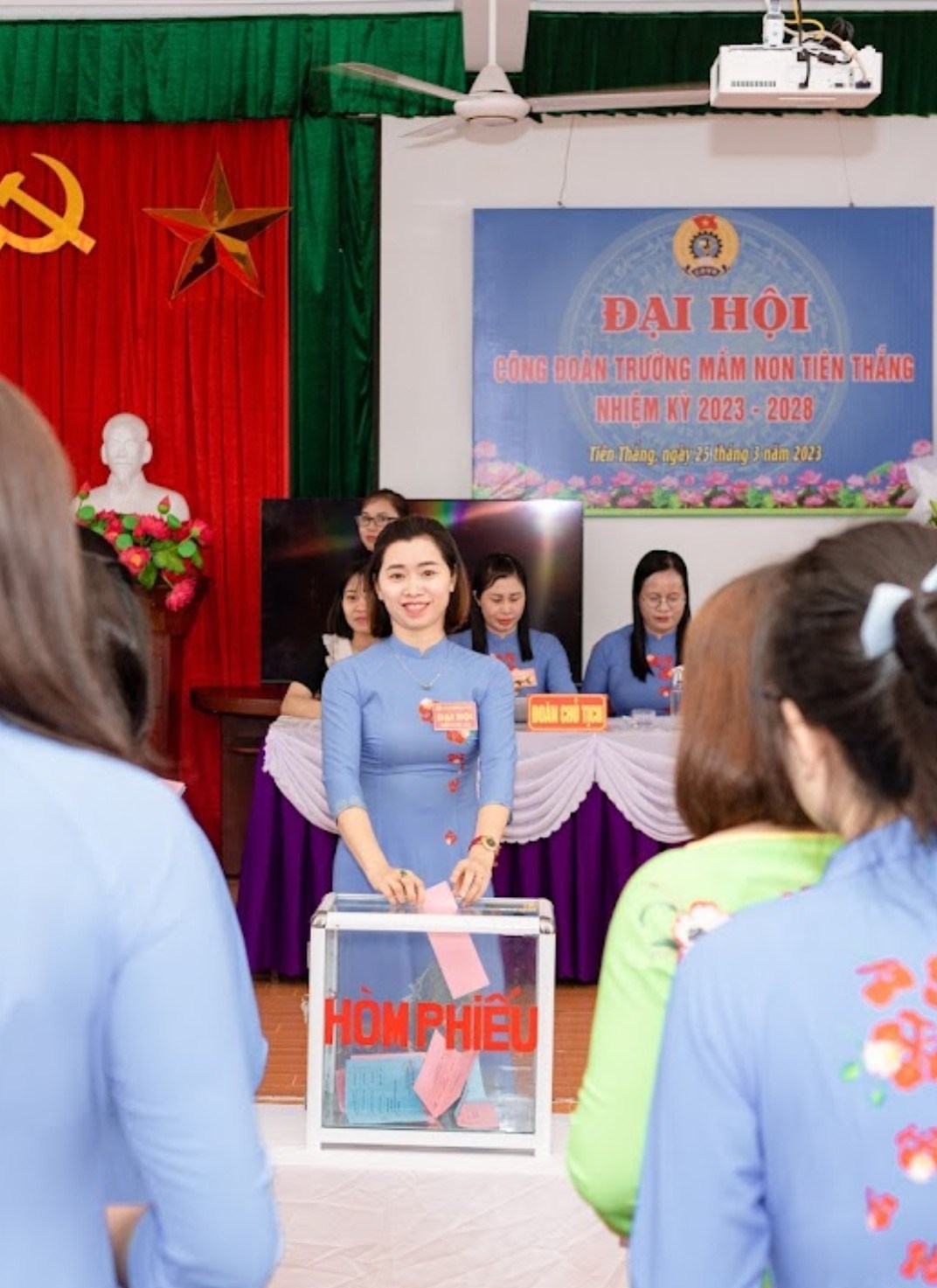Đại hội đã lựa chọn bầu Ban chấp hành Công đoàn trường Mầm non Tiên Thắng nhiệm kỳ 2023 - 2028 là 03 đồng chí, bầu đại biểu dự Đại hội XI Công đoàn huyện là 01 đồng chí thực sự dân chủ, đảm bảo tiêu chuẩn là những cán bộ có đủ năng lực, trình độ, có khả năng tổ chức thực hiện Nghị quyết của Đại hội; có tâm huyết, nhiệt tình, có uy tín trong phong trào công nhân, hoạt động công đoàn; dám đấu tranh, bảo vệ quyền và lợi ích hợp pháp, chính đáng của đoàn viên, CNVCNLĐ; thực hiện tốt các chức năng, nhiệm vụ của tổ chức công đoàn, đặc biệt là chức năng chăm lo, bảo vệ quyền và lợi ích hợp pháp, chính đáng của CNVCNLĐ; nâng cao uy tín, vị thế của tổ chức Công đoàn.